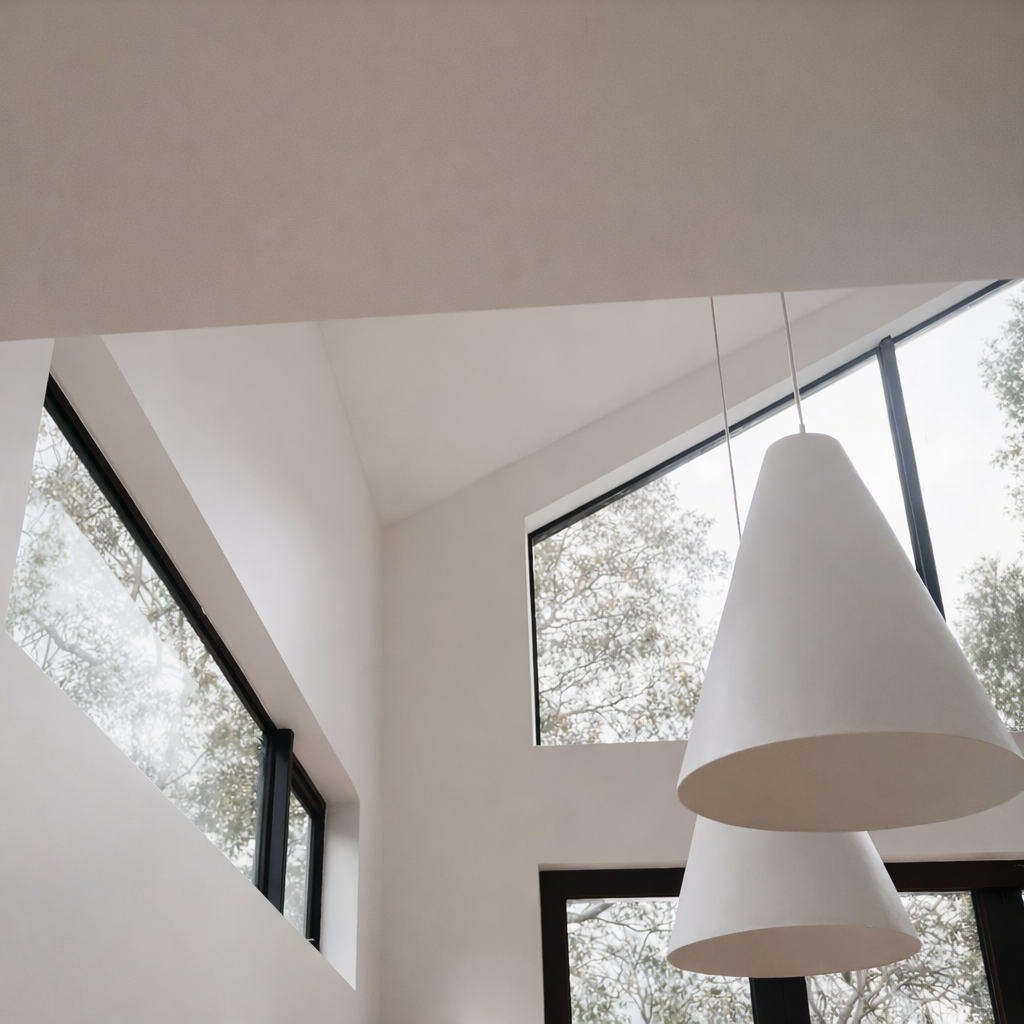 Soaring five-metre cathedral ceilings invite an abundance of natural light into the open-plan living zones, enhancing the sense of scale and openness throughout. Brushed brass fixtures provide a subtle nod to the home’s heritage origins, introducing a refined layer of warmth and understated luxury.