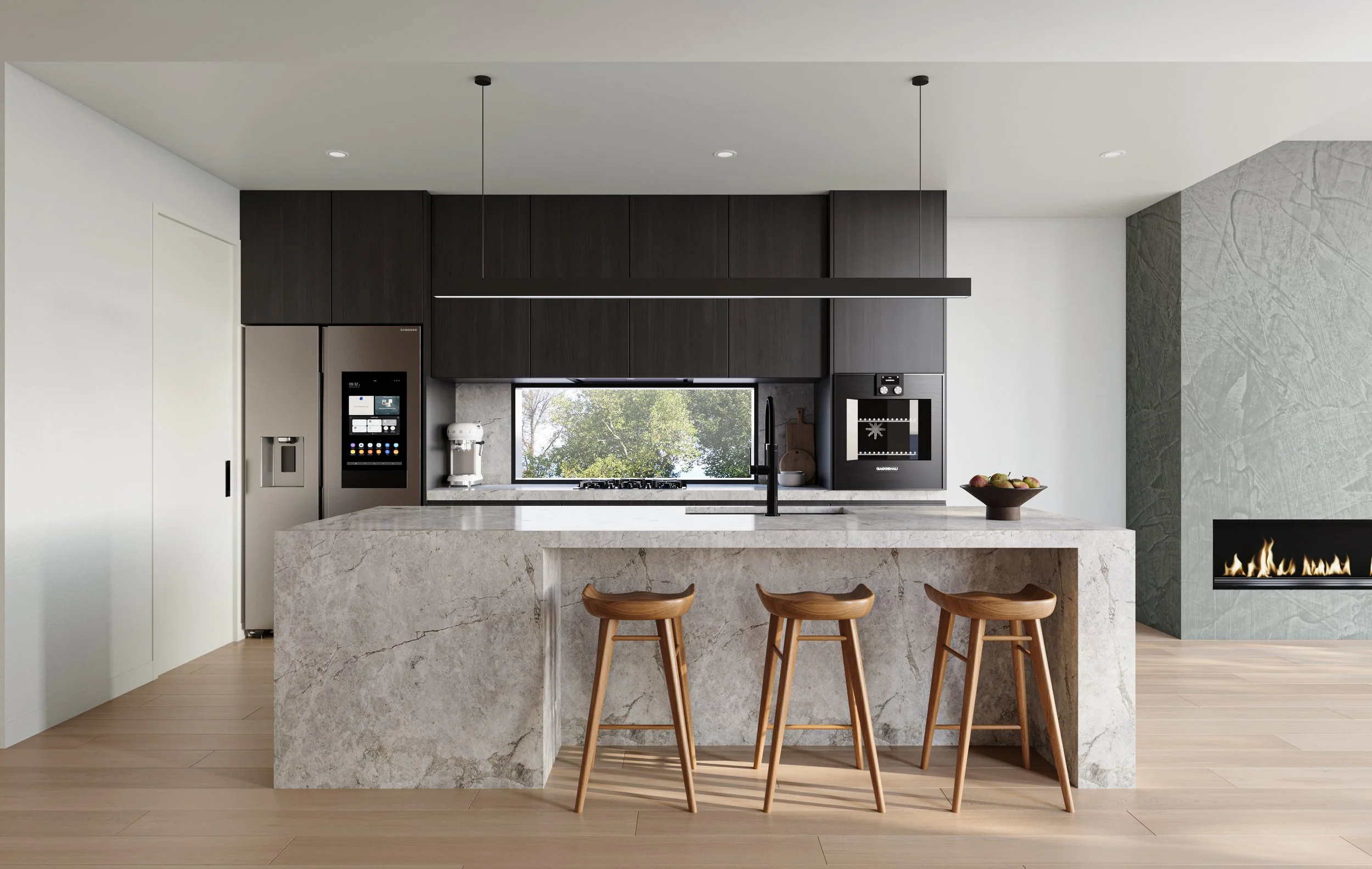 Each residence is a statement in its own right, marrying functionality with understated luxury, while open-plan living spaces are framed by generous windows that invite in natural light and garden views.