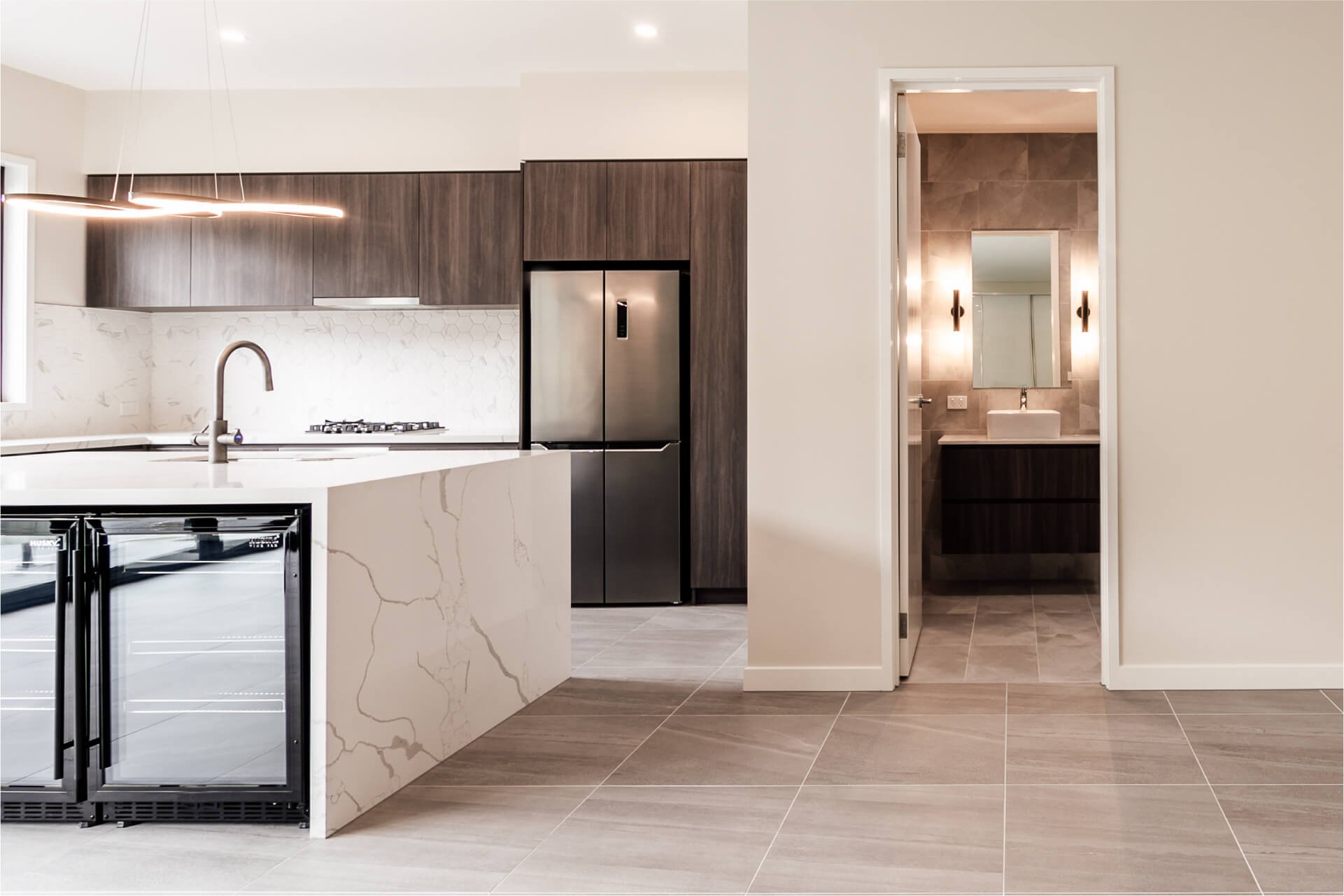 In a expansive extension to the original home, recreation and relaxation exist in a perfect balance in this bespoke pool house. Framed by expansive glazing and clean architectural lines, the pavilion creates a cohesive connection as it opens seamlessly into an in-ground pool and spa.